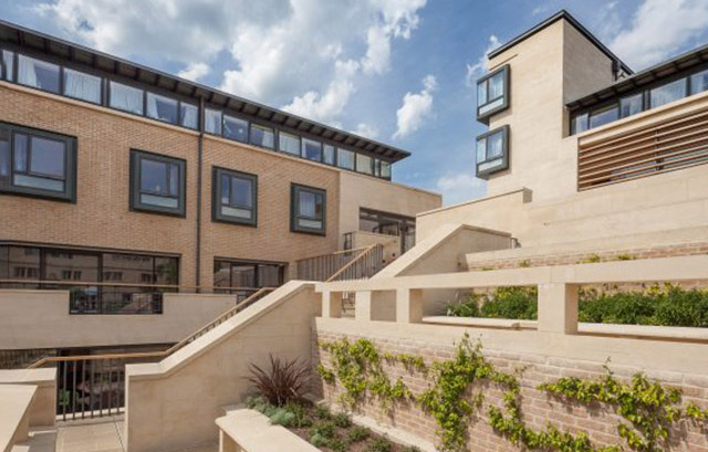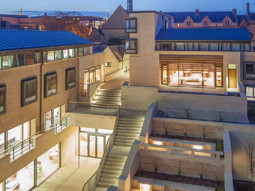 Pembroke College Oxford: Five new buildings contain an auditorium, seminar rooms, café and student rooms around two new quads, linked to the old college by a bridge which over-sailed Oxford’s ancient City wall.