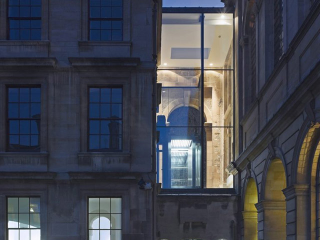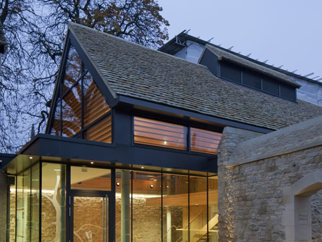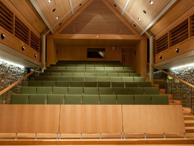 The Queens’ College Oxford: The space between two 18th Cent. stone garden walls was chosen to enclose a new all timber auditorium and associated facilities.