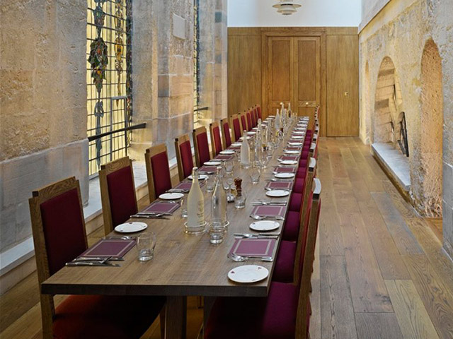 The Queens’ College Oxford: A new dining room for senior members was created in the narrow gap between two Grade 1 Listed 18th Cent buildings, with access from adjacent buildings by a glass link which also contained a glass wheelchair lift. The commission included designing the furniture.