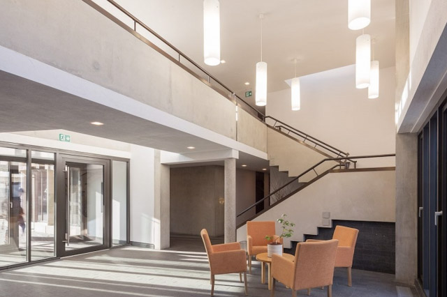 Wolfson College Oxford: Extension to Powell and Moya’s listed 1966 buildings include an auditorium, seminar rooms, café and expanded library. These followed the success of two earlier residential blocks.
